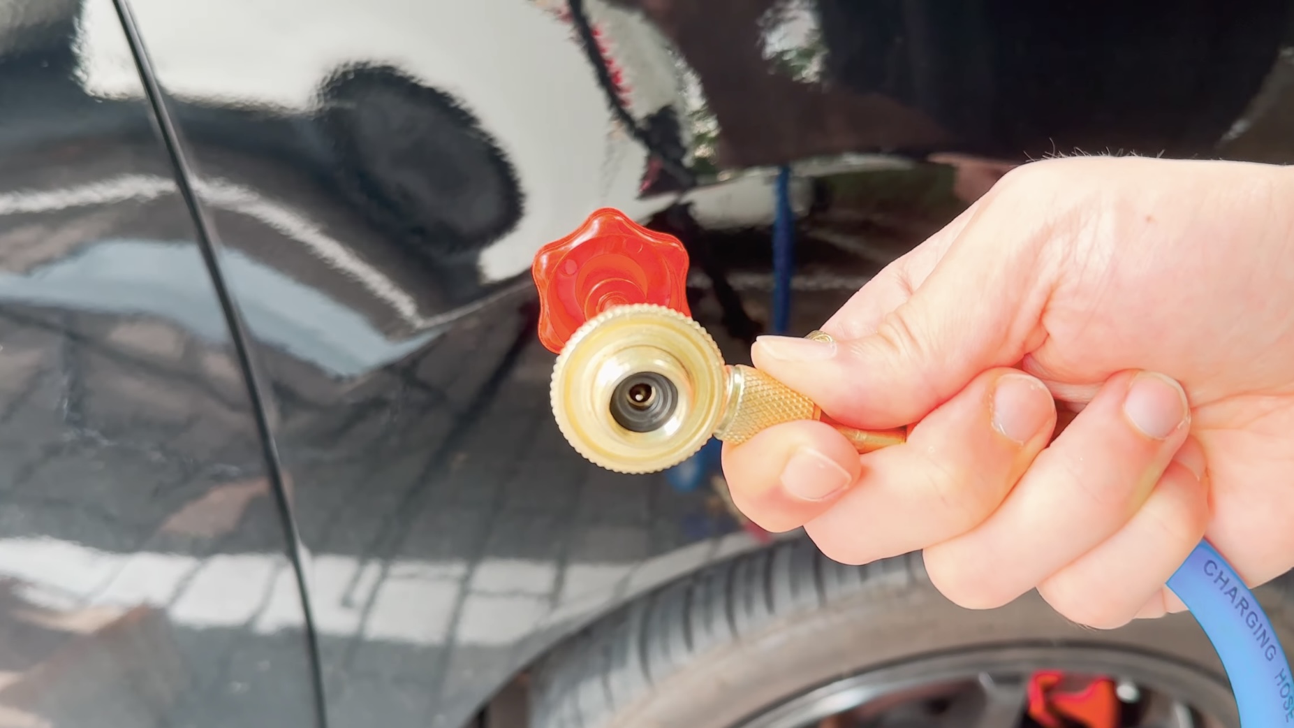 2.냉매캔 연결하는 곳에 핀을 후진 시킨다.